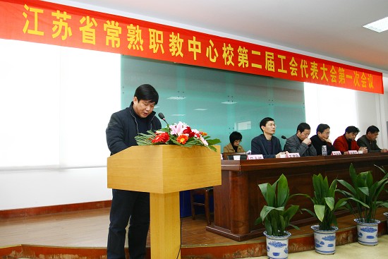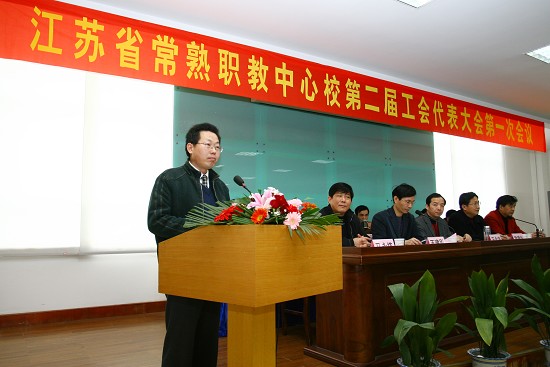 2月8日上午,我校第二届工会代表大会第一次会议在综合楼八楼报告厅胜利召开,大会主席团由王金涛、金玉书、王建刚、陈飞、邹丽芳、王春、吴国清、周万民、李永良、周玉霖、陈寅初、陈红、朱谷飞、谷新民、徐静芳、周伟良十六人组成,学校党委副书记王建刚主持会议,苏州市教育工会副主席、常熟市教育工会主席尹建生应邀出席了会议,江苏省常熟中学工会主席沈庆良、学校团委书记王湖分别致贺辞。