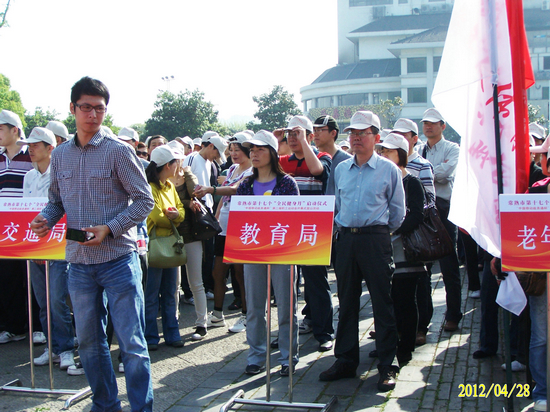 4月28日,常熟市人民政府主办的常熟市第十七个“全民健身月”启动仪式暨第二届职工运动会开幕式登山活动在亮山工程镇海台举行。由我校部份教职工和学生组成的团队,在学校工会主席李永良和工会委员的带领下,代表常熟市教育局参加了这次活动。