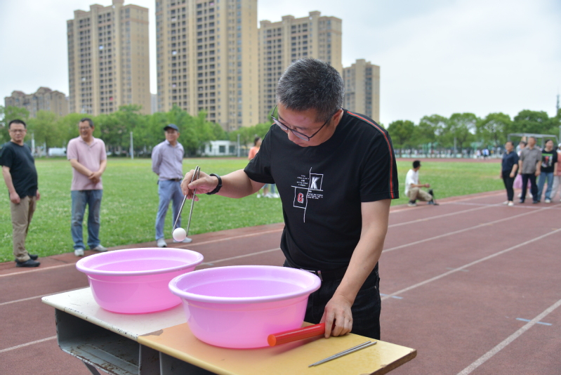 比赛设置了摸“石头”过河、投篮和“筷”夹乒乓球三个团体接力比赛项目,样式新颖,既有趣味性,也很有挑战性。赛场上,大家热情高昂,团结协作,奋力拼搏,乐在其中,体验着运动的快乐、竞争的乐趣,现场加油声、欢呼声此起彼伏。经过激烈角逐,最终行政1队、机电工程系2队分获摸“石头”过河接力赛前两名,汽车工程系1队、基础部2队分获投篮接力赛前两名,电气工程系1队、基础部2队分获“筷”夹乒乓球接力赛前两名。