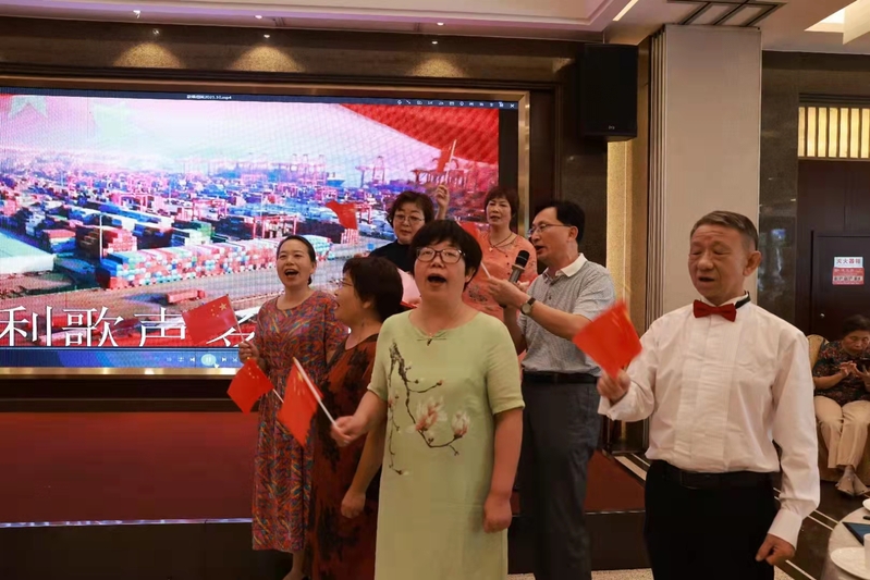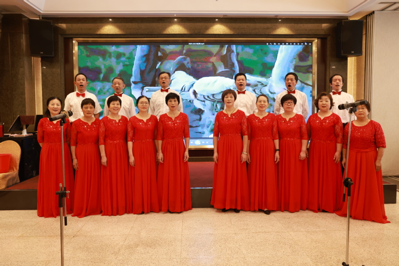 接着一个个自编自导的节目闪亮登场,现场精彩的表演博得了台下观众一阵阵热烈的掌声。退协文娱组大合唱《红军不怕远征难》清脆嘹亮、气势磅礴,李国良老师的苏州评弹白蛇传选曲《赏中秋》吴语软侬、声韵俱佳,姚敏新老师的诗朗诵《采桑子重阳》与邓恩楠老师的书法同台表演、独具特色,女生小组唱《老师老师我爱你》声情并茂、婉转动听,最后全场高唱《歌唱祖国》,将联欢活动的气氛推向高潮。活动过程中,节目组还穿插安排了谜语竞猜和抽奖环节。