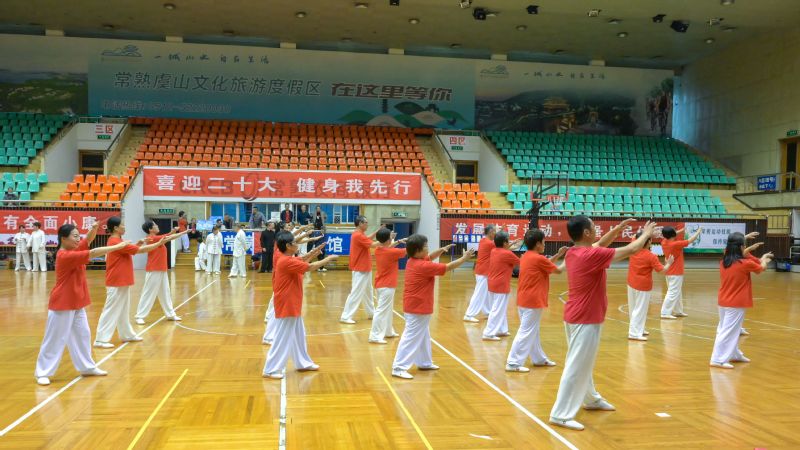 10月16日上午,值此喜迎二十大召开之际,常熟市第二十七个全民健身月“暨”常熟市武术协会第十一届武术交流观摩比赛在市海虞北路体育馆隆重举行,我校教工太极社团与退教协会拳操队联合组队参赛。