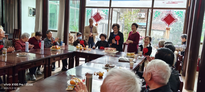 金秋送爽,丹桂飘香。11月11日上午,学校在退教活动之家隆重举办2025年退休教职工集体祝寿活动。副校长兼工会主席金华、工会副主席钱立新与22位年满七十、八十、九十岁的退休教职工欢聚一堂,退教协会理事参与祝寿活动。活动由退教协会理事长朱振国主持。