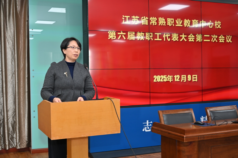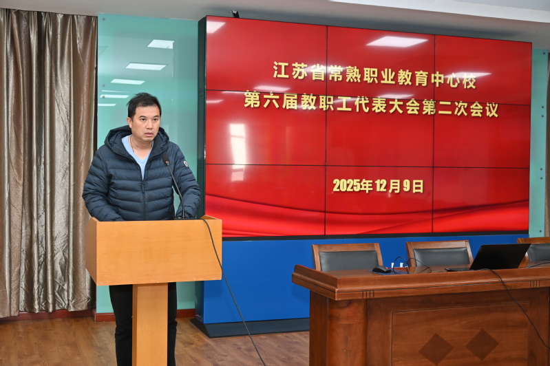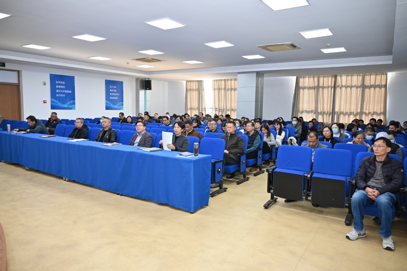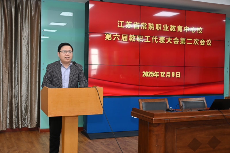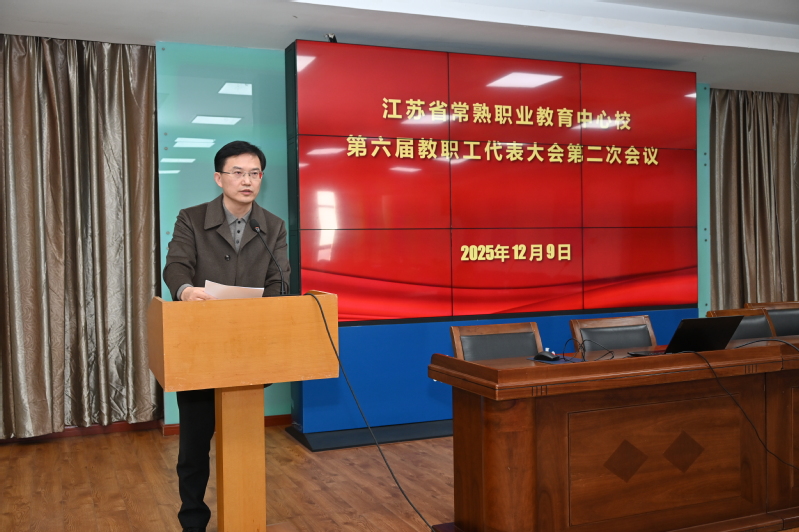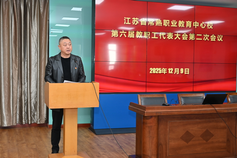 2025年12月9日下午,学校在综合楼八楼报告厅召开了第六届教职工代表大会第二次会议。大会由副校长兼工会主席金华主持,第六届教职工代表大会代表及全体中层以上干部118人参加了会议。